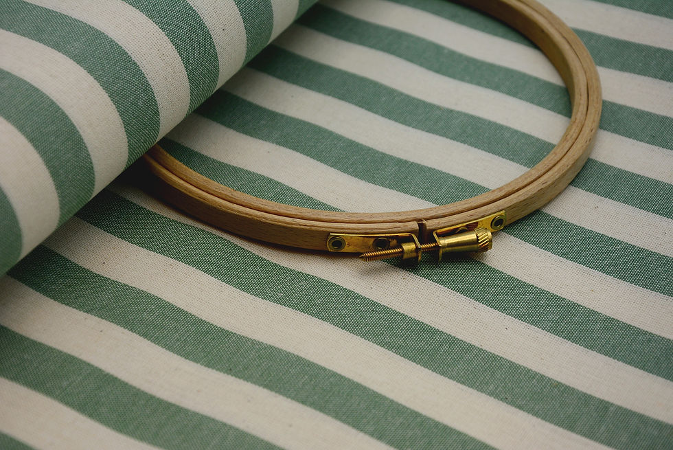 Tela in cotone tinto in filo- Riga maxi verde salvia