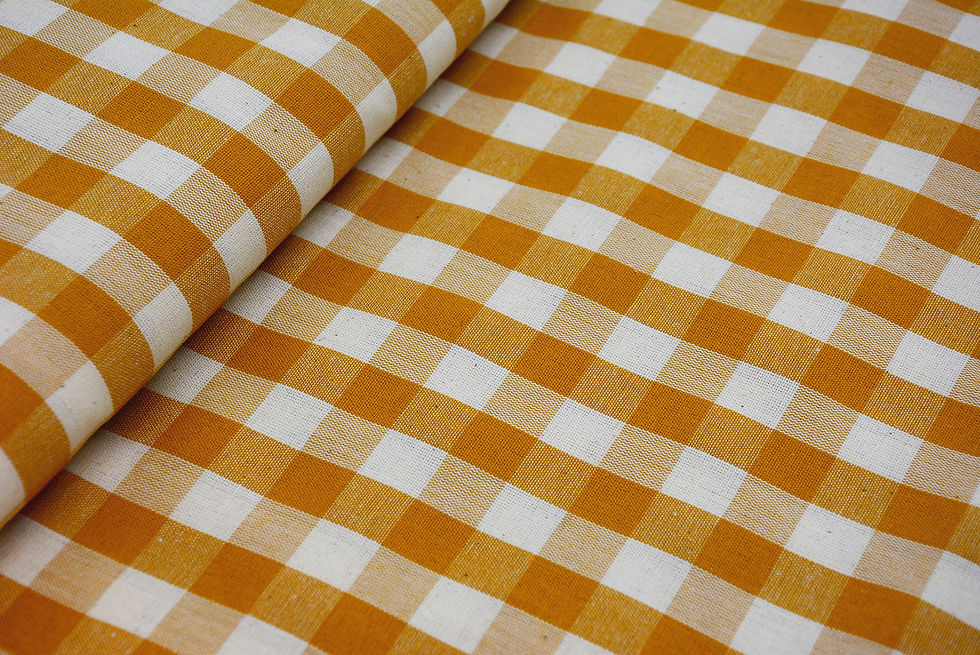 Tela in cotone tinto in filo- Vichy maxi giallo senape